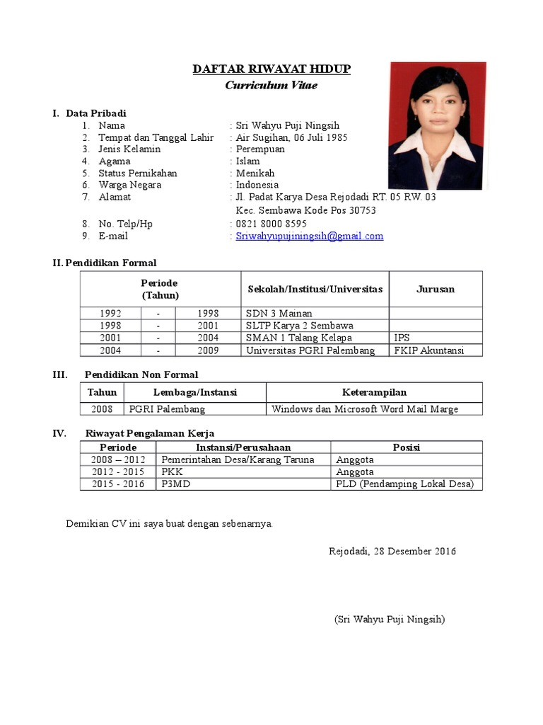 Daftar riwayat hidup digunakan sebagai dokumen perkenalan diri dan memberi gambaran perihal latar belakang pelamar kerja. Sebaik apapun skill atau kemampuan yang. Mulai dari biodata, pengalaman pendidikan, pengalaman.
