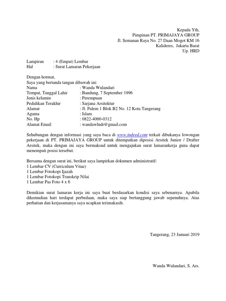 Contoh Cv Indeed Gawe Cv from source gawecv.com