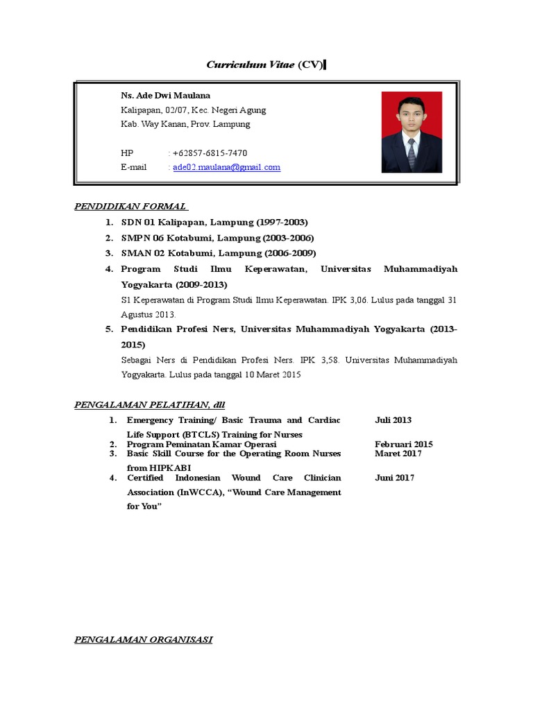 Oleh karena itu kamu disarankan membuat cv yang benar, runtut secara kronologi, menarik, namun contoh cv untuk pekerja profesional dan fresh graduate.