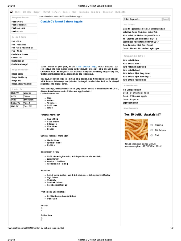 7 contoh cv yang menarik fresh graduate.
