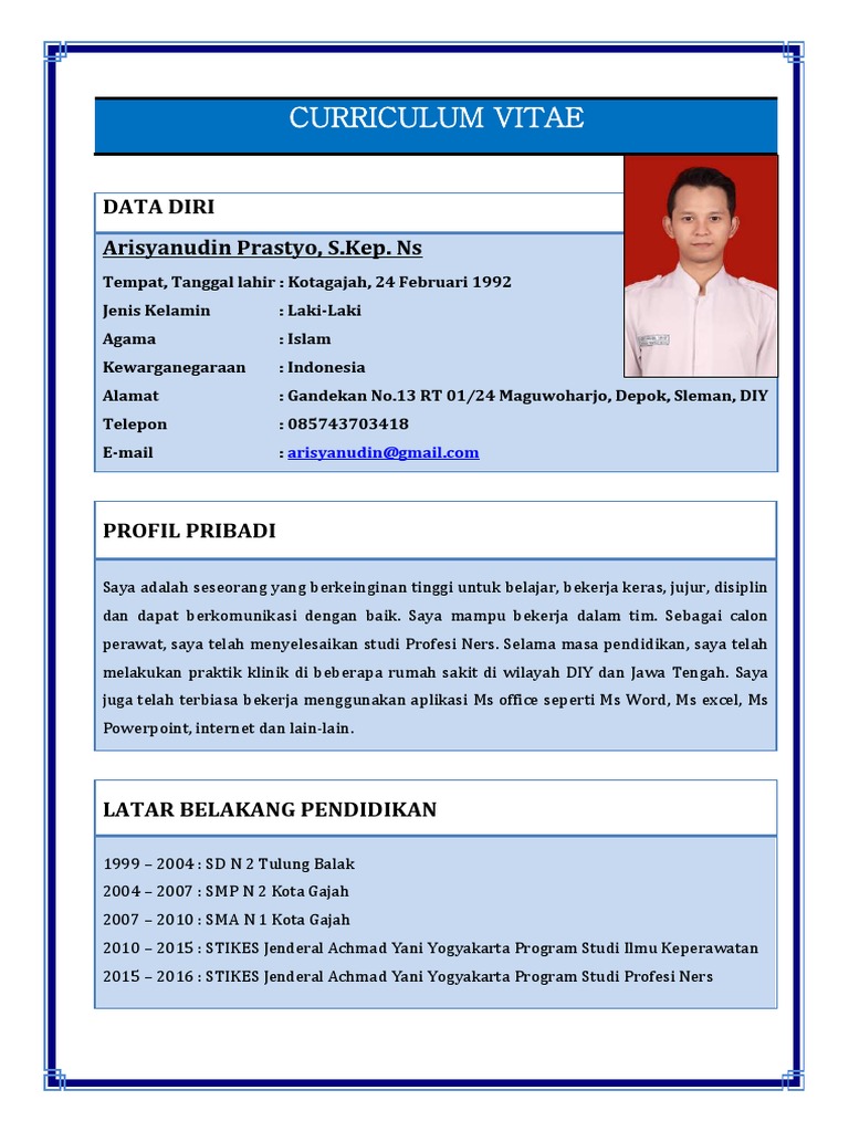 Contoh cv perawat fresh graduate. Contoh cv yang baik dan benar untuk para pelamar kerja. Sebenarnya banyak contoh cv pdf yang bisa ditemukan di internet, namun ternyata tak semua memiliki kriteria yang baik.
