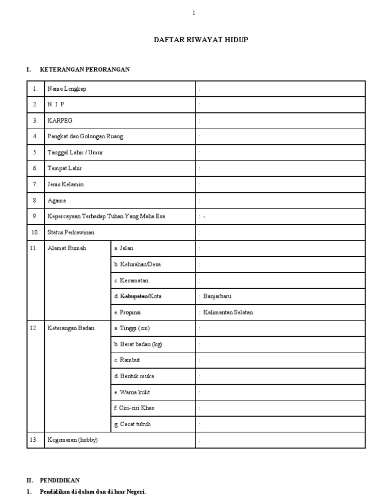 Download format cv kosong word. Daftar riwayat hidup yang dibuat baik dan benar akan memperbesar peluang untuk diterima bekerja pada perusahaan tersebut.