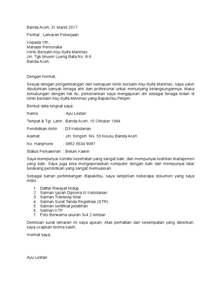 44+ Contoh Cv Lamaran Kerja Kebidanan Pics - Contohku