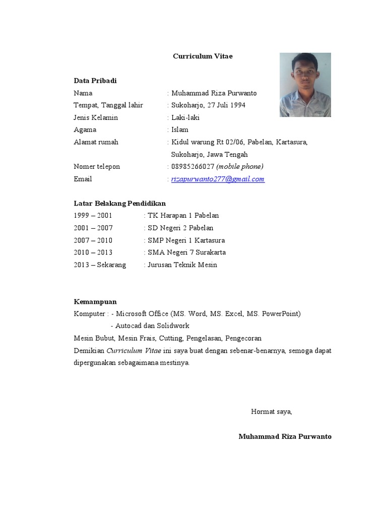 Artinya, penjelasan mengenai keterampilan teknisnya sudah dimasukkan bersamaan dengan surat lamaran kerja. Contoh cv jurusan teknik mesin downlllll mp3 & mp4. Karena potensi ilmu dan karier yang akan didapatkan dari jurusan ini, anak cewek jadi, di dalam teknik mesin sebenarnya ada banyak konsentrasi pilihan yang bisa kamu pilih.