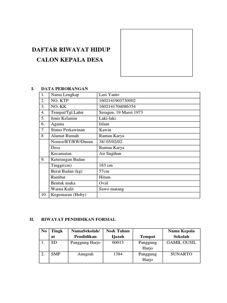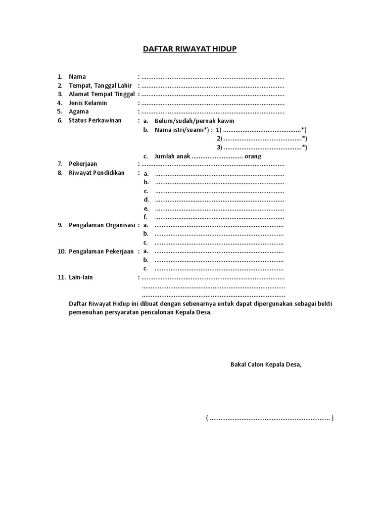 48+ Daftar Riwayat Hidup Calon Kepala Desa Doc Pictures - Contohku