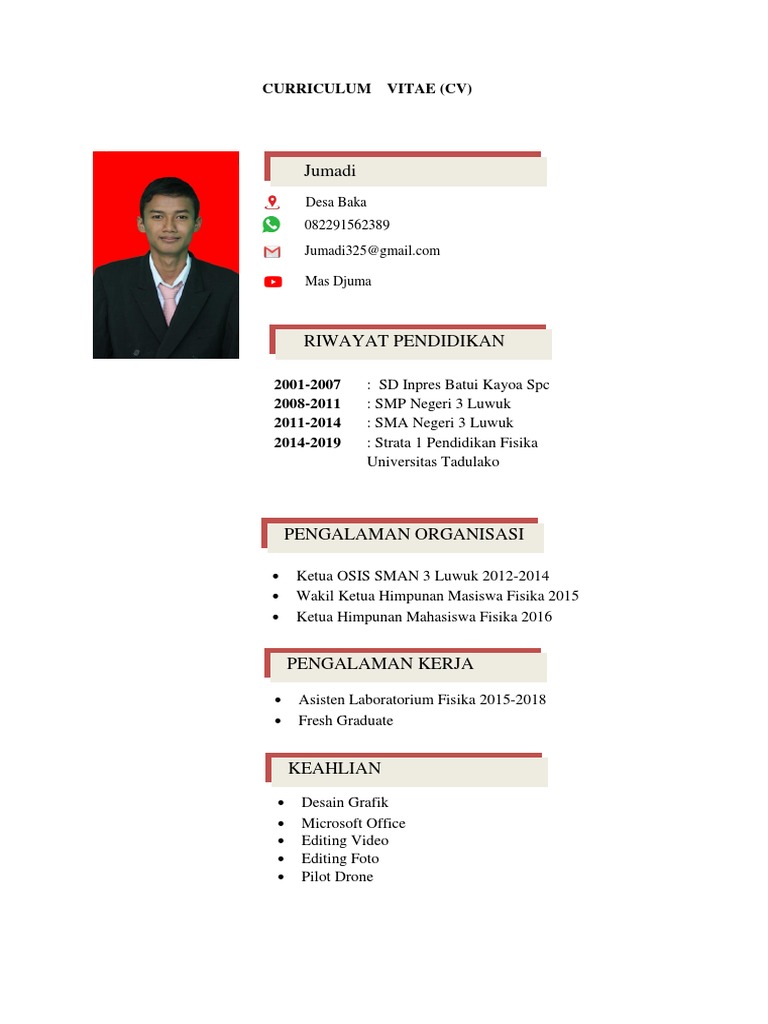 Fill in your other sections, then go back. Agar lamaran anda lebih dipertimbangkan, ada baiknya mempersiapkan cv yang lebih baik salah satunya dengan melihat contoh cv yang sudah ada.